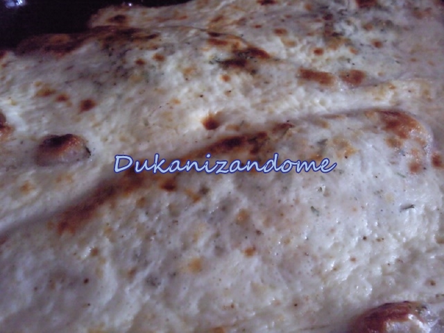 Mientras tanto batimos en un cuenco las claras, añadimos el perejil molido, el ajo y el queso batido. Sacamos la bandeja del horno y regamos el pescado con la salsa. Cuando veamos que ya está gratinado apagamos el horno y servimos calentito.