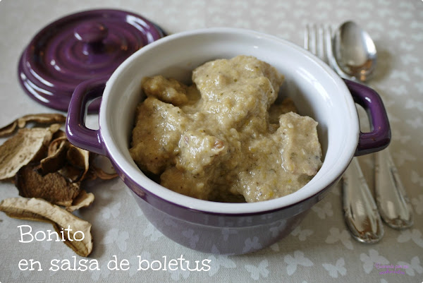 Bonito en salsa de boletus. Una receta donde el bonito queda muy jugoso y ¡nos advierten en la receta que no nos olvidemos del pan porque querremos mojar en la salsa! Receta de Cocinando para mis cachorritos.