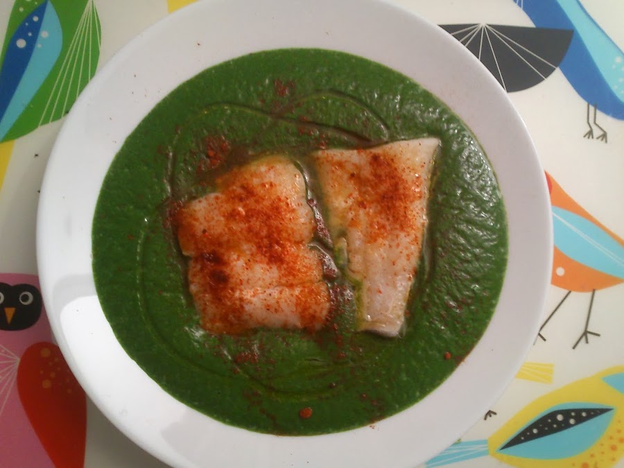 Bacalao sobre crema de espinacas y almendras, ésta es otra de esas recetas completas y sanas que, además llama mucho la atención por el colorido del plato. Receta de De pucheros y otros.