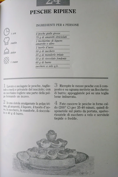 Hoy nos toca Reto Cocina Regional Italiana en la versión receta dulce, la jefa es Maggie, del blog El cajón desastre de Maggie, unos fantásticos melocotones rellenos, espero que os guste!!!