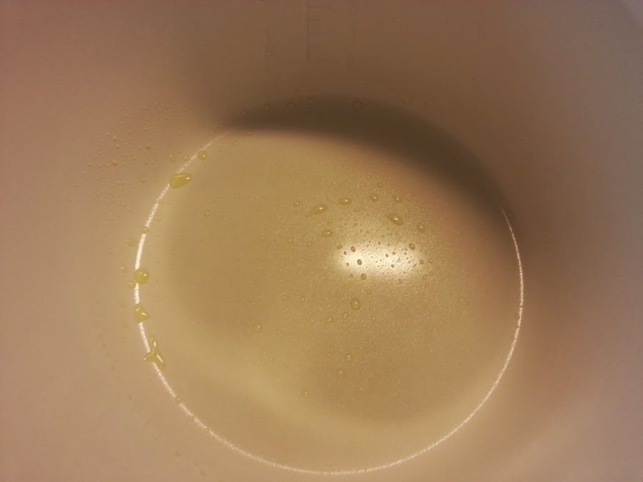 Poner un poquito de aceite de oliva en la cubeta y lo repartimos con un papel de cocina por toda la cubeta.