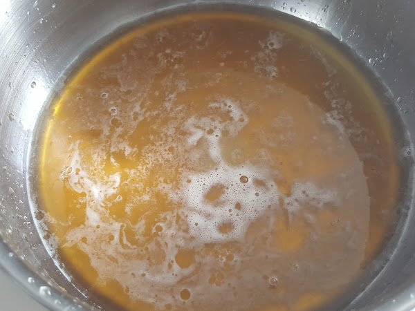 10. - Calentamos la miel mezclada con el agua.