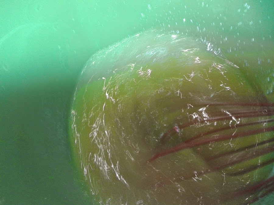 Empezaremos batiendo los ingredientes líquidos, el vino y el aceite de oliva.