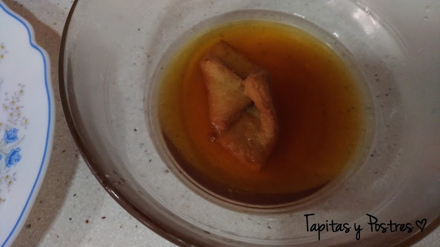 O los bañamos en el almíbar de miel (que esté frío) que es simplemente mezclar miel y agua y calentar hasta que se integren.