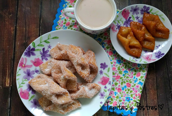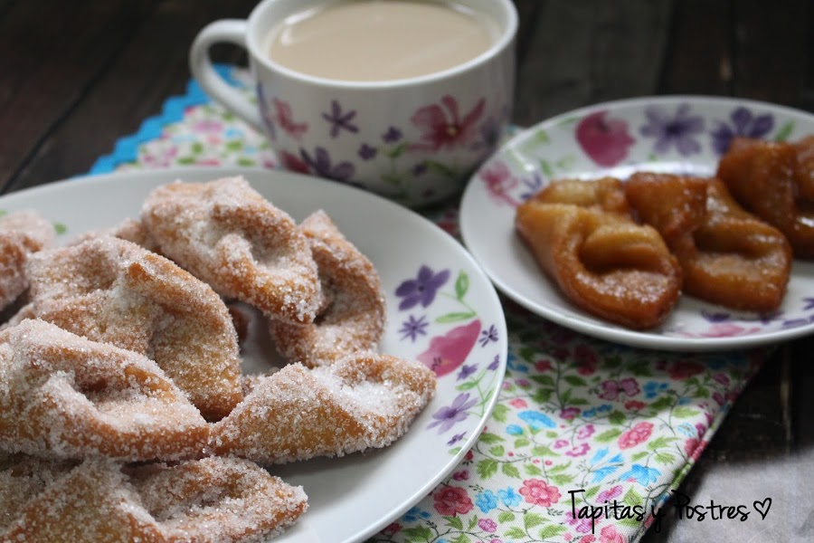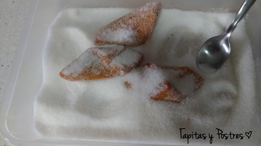 Existen dos variantes, los rebozados en azúcar y los bañados en miel. En mi casa gustan más los de azúcar, pero he hecho unos poquitos en miel para que los veáis también.