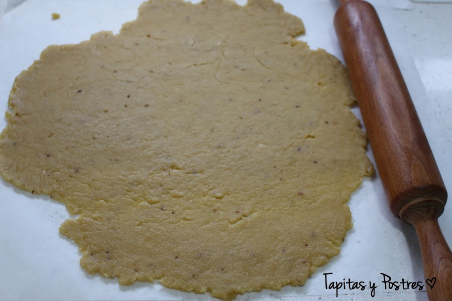 Sacamos la masa que estará como desmigada y la hacemos una bola. Aceitamos el rodillo para que no nos cueste trabajo y estiramos hasta dejarla finita.