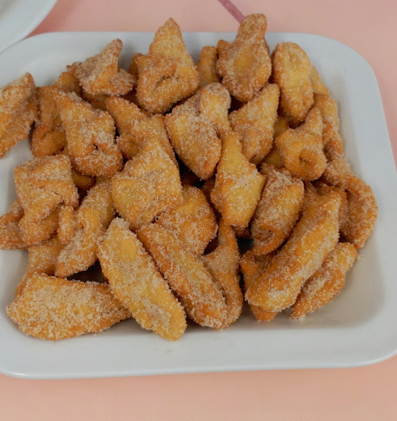 4.- Ponga la masa sobre una superficie espolvoreada con harina . Extienda la masa con la ayuda del rodillo hasta dejarla de unos 2mm. de grosor. Corte en rectangulos y doble pegando las puntas opuestas y sellandolas con agua para que no se despeguen al freirlos.