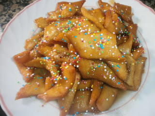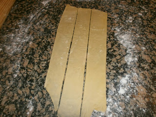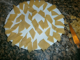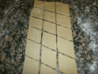 Después de estirar la masa se va cortando en diagonal formando rombos, cuanto más pequeños, más elegantes quedan y más tiempo te ocupan.