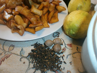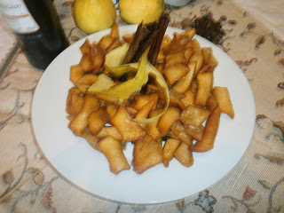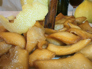 Elaborar un almíbar con el azúcar, la canela, zeste de limón, clavos de olor, miel, y un buen chorro de vino amontillado.