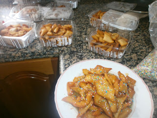 Las piezas ya fritas y frías se bañan durante unos minutos en el almíbar caliente.