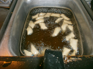 Volcar las piezas en la freidora y dejar que se doren, tienen que hincharse, si no quedan muy gruesos al masticar y al paladar.
