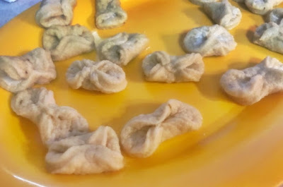 Mojando los dedos en agua, juntamos en el centro dos partes de la masa y vamos formando los pestiños