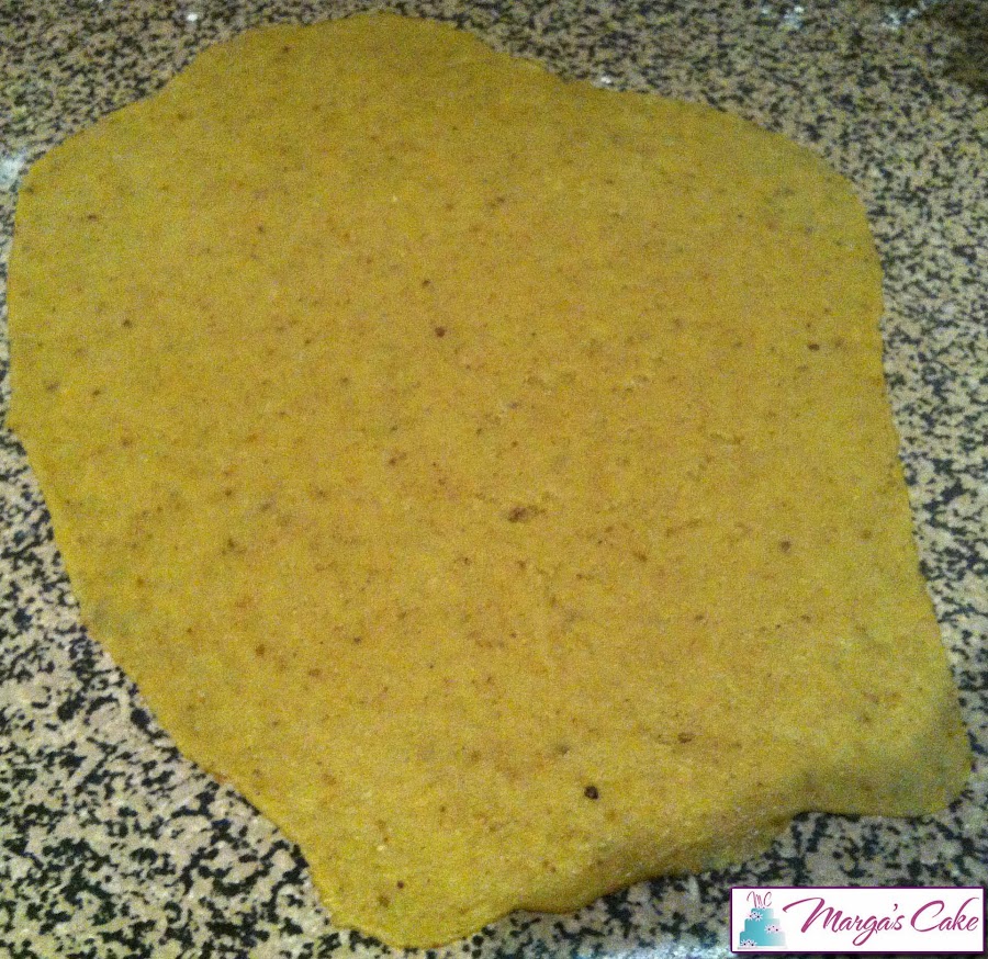 Una vez reposada iremos tomando porciones de masa y estiraremos bien fina con el rodillo de amasar,