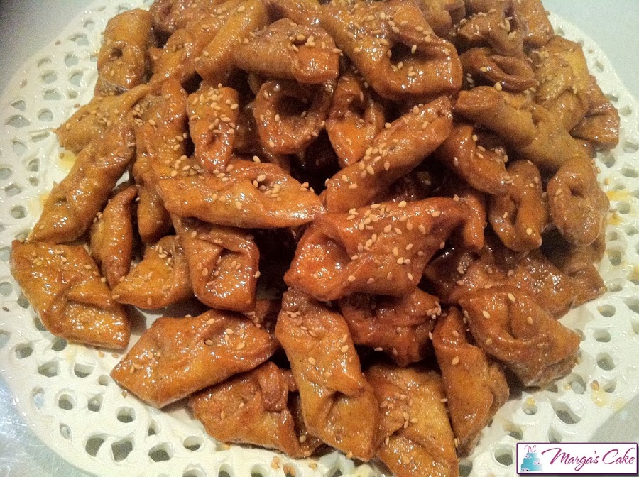 El siguiente paso es empezar a freírlos en abundante aceite de oliva con fuego no muy fuerte, pues se nos quemarían. Iremos apartando sobre papel absorbente de cocina y así hasta freír todos los pestiños. Luego solo nos queda enmelar que lo haremos poniendo los 500 gr de miel en un cazo al fuego junto los 100 ml agua. Cuando empiece a tomar hervor iremos agregando los pestiños que dejaremos unos minutos sumergidos hasta que tomen la miel necesaria.