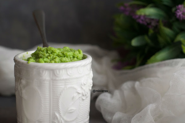 Los guisantes o bolitas verdes como los llamaban mis hijos de pequeños, se puede cocinar igual que cualquier legumbre o verdura, pero yo me he arriesgado y he preparado un pesto con ellos que me ha encantado el resultado. Lo probare con pasta o en tostadas con alguna cosa mas y os cuento como queda.