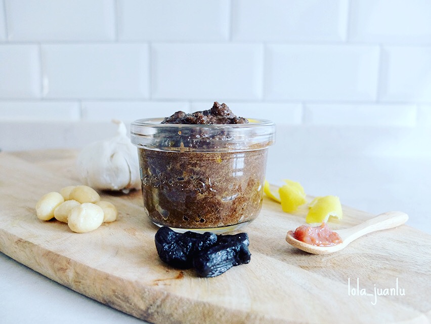 El ajo negro, hasta hace unos años, era un ingrediente absolutamente desconocido. Proviene de la tradición coreana y se somete a un largo proceso de fermentación. Es simplemente sorprendente, dulce y nada picante, se asemeja vagamente al tallo del regaliz. En combinación con el aroma de la cáscara de cítricos, se convierte en un ingrediente muy saludable.