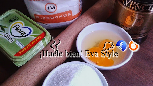 1.- Mezclamos la harina con el azúcar, añadimos un huevo, la yema y la margarina. Amasamos bien con las manos limpias, vertemos el coñac. Hacemos una bola con la masa y dejamos reposar para que leude 30 minutos, tapada con papel flim.