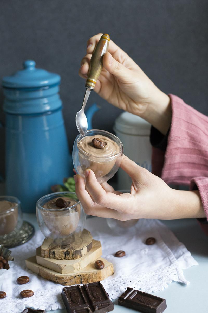 Por último reparte la crema de petit suisse en los vasitos que hayas elegido y deja refrigerar por lo menos 24h. Nosotras para decorar hemos usado una pieza de chocolate que parece un grano de café, así le damos un punto y final perfecto!