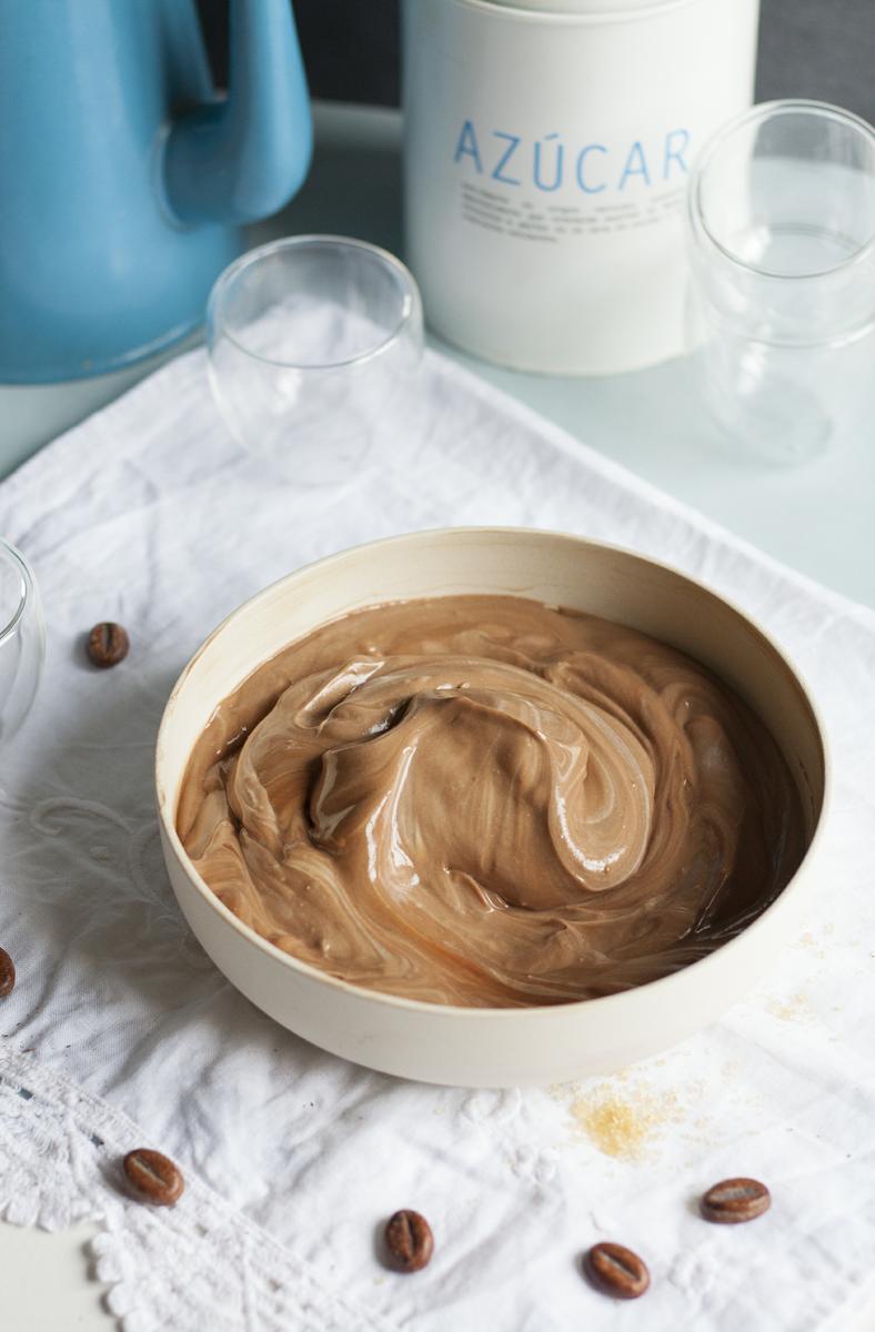 En un cazo poner la nata (crema de leche) y añadir el café soluble junto con el azúcar. Poner a fuego bajo hasta que tengamos el café y al azúcar totalmente incorporado a la nata (crema de leche). En este punto me gustaría comentar que podemos añadir el café que más nos guste, nosotras a veces tenemos en casa un soluble de café moka o caramelo, estas opciones pueden resultar geniales, y aportar un toque diferente.