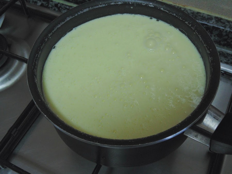 Luego calentamos hasta que tome volumen y espese un poco. No hace falta que llegue a hervir.Vertemos en los vasitos y dejamos reposar en la nevera una media de 3 ó 4 horas.