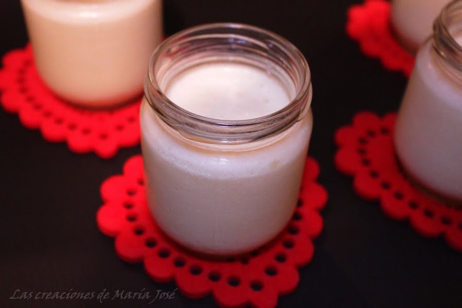 Vertemos la mezcla en los vasitos y dejamos enfriar antes de guardar en la nevera unas horas para que cuaje.