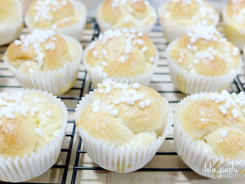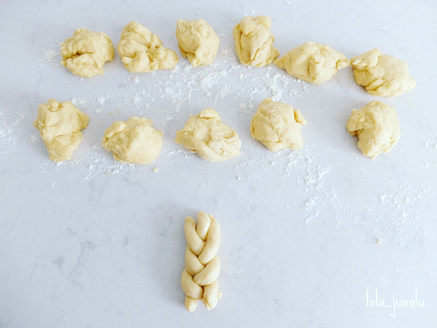 Los suelo acompañar con mantequilla, mermeladas, crema de avellanas... a estos pequeños bollos trenzados le pega todo.