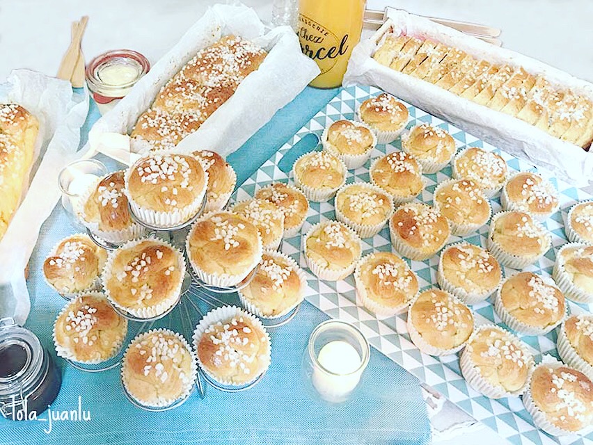 Además, tras el éxito que ha tenido el Brioche tressée, he pensado que podía hacerlos de forma individual, así, estos pequeños brioches son más fáciles de servir y transportar. Además, de esta manera, me será más fácil repartir entre aquellos que aparecéis siempre en casa cuando los hago.