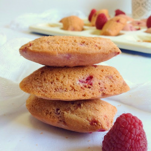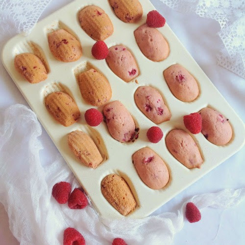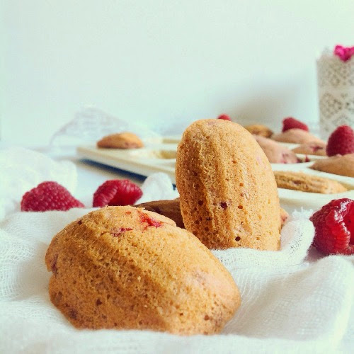 La receta que he elegido es bastante sencillita. Son unas madeleines del libro Pasteles de Alta Costura de Patricia Arribálzaga. Ella da la receta de unas de albaricoque y luego propone cambiar la fruta por frambuesas. Pues eso he hecho yo, cambiar la fruta por frambuesas, que me encantan. Espero que a vosotros también os gusten.