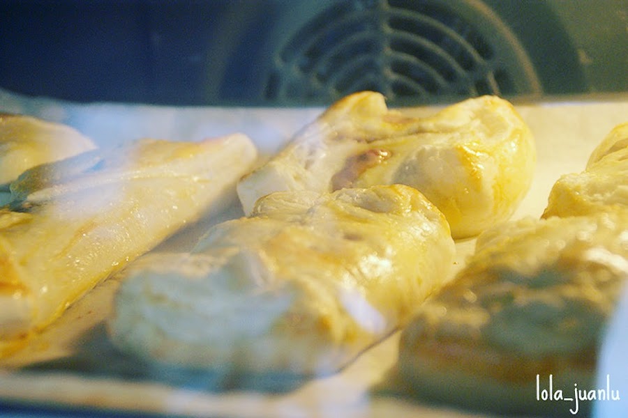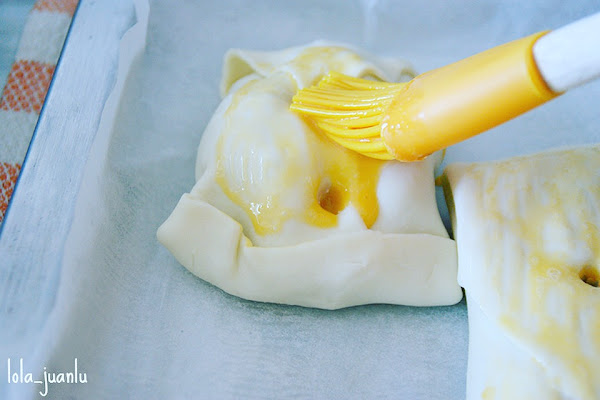 Mezclamos la yema de un huevo con un poco de agua y pintamos el hojaldre.