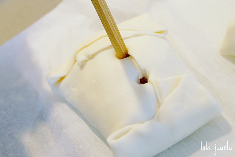 Realizamos dos agujeros en la masa, para poder dejar escapar el vapor durante la cocción.