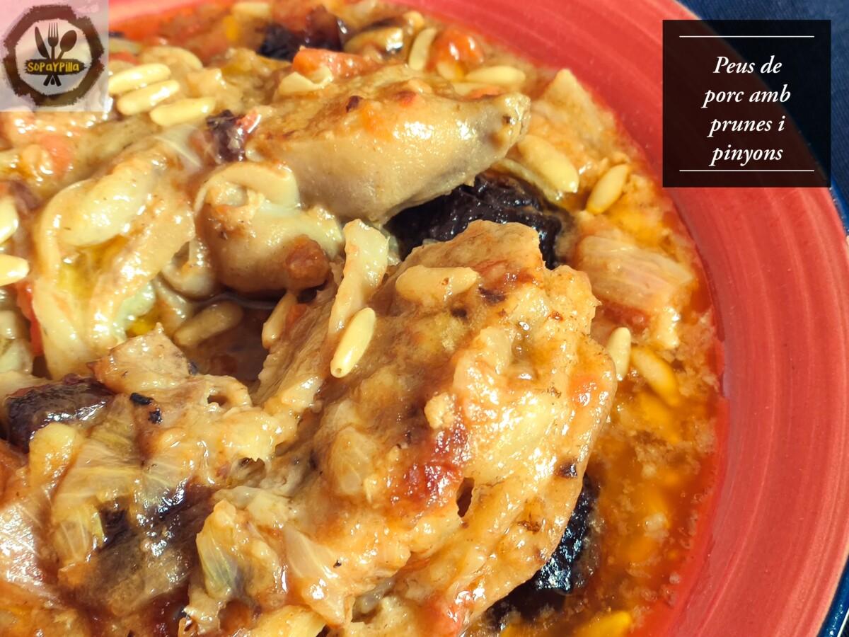 Aunque difíciles de comer con cubiertos, los pies de cerdo son una más de las delicias que nos ofrece tan entrañable animal. Mejor los comemos sin cubiertos para aprovechar la carne y la gelatina al 100% verdad? Con las ciruelas y los piñones, la verdad es que quedan de escándalo y la salsita nos pide mucho mucho pan. Quieres ver la receta?