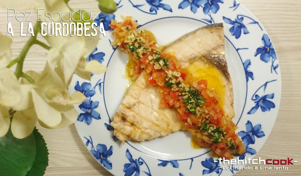 Nuestra receta evoca a Córdoba, tercer personaje principal de "Un amor por revelar". En sus entrañas se aglutina todo el deambular de esta pareja noctámbula. Tomemos el pescado como el mapa de la ciudad, que sirve como escenario o laberinto. En su alfombra (o carne) se trazan caminos marcados a fuego en la plancha que nos catapultan a esos pasadizos y callejuelas que serpentean por la localidad. La irregularidad del propio pez espada también nos hace pensar en esos caminos de adoquinado agreste, abombado, por cuyos rostros han pasado millones de suelas. Y su color tostado, brillante, como lo es el suelo a la luz tenue de las farolas.