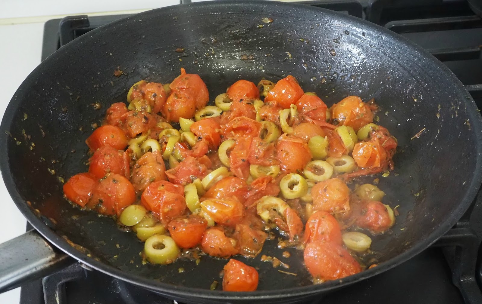 - Pasado el tiempo, añadimos las aceitunas. Removemos.