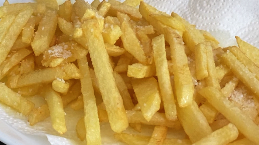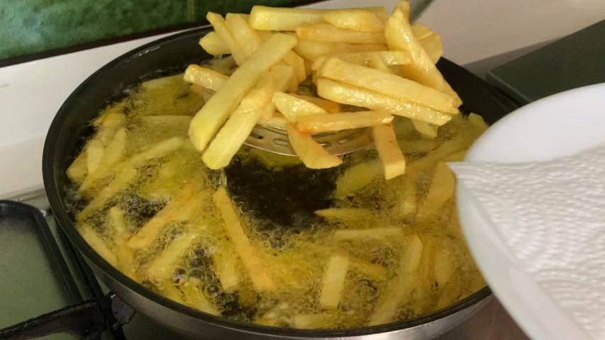 Saca las patatas a una fuente con papel absorbente.