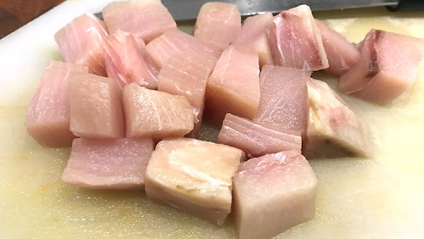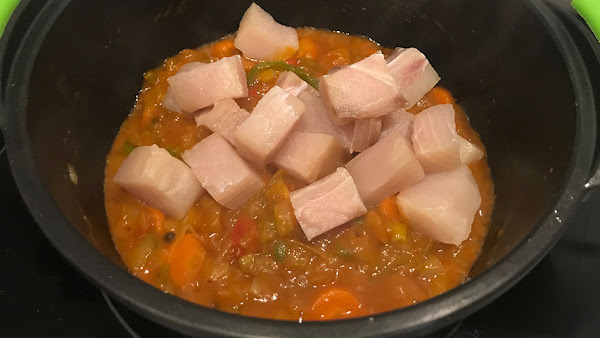 Introduce los tacos de pez espada en la cazuela con su sal correspondiente.