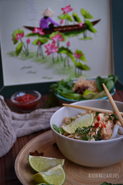 El PHỞ es el plato más típico de Vietnam, el reflejo puro de su cultura dicen... y aunque parece de lo más simple, es un plato lleno de matices y sabores. El Pho es una sopa con un caldo claro pero intenso, noodles de arroz y una mezcla de hierbas frescas.Y sabor, muchísimo sabor. Hay muchas variedades, y aunque el más típico es el Pho Bo (de ternera) he optado por hacer y compartir la versión de Pho Ga que es con pollo. Dicen que el secreto y todo el sabor está en la base que es el caldo, preparado a fuego lento y durante horas con huesos y otras partes de la ternera junto con las hierbas aromáticas y especias. En esta ocasión lo haremos con un caldo de pollo, especias y hierbas, que quedará muy sabroso. Os recomiendo usar especias enteras o en grano y tostarlas un poco para hacer el caldo ya que tienen más sabor y es más fácil después colarlo y que quede bien claro.