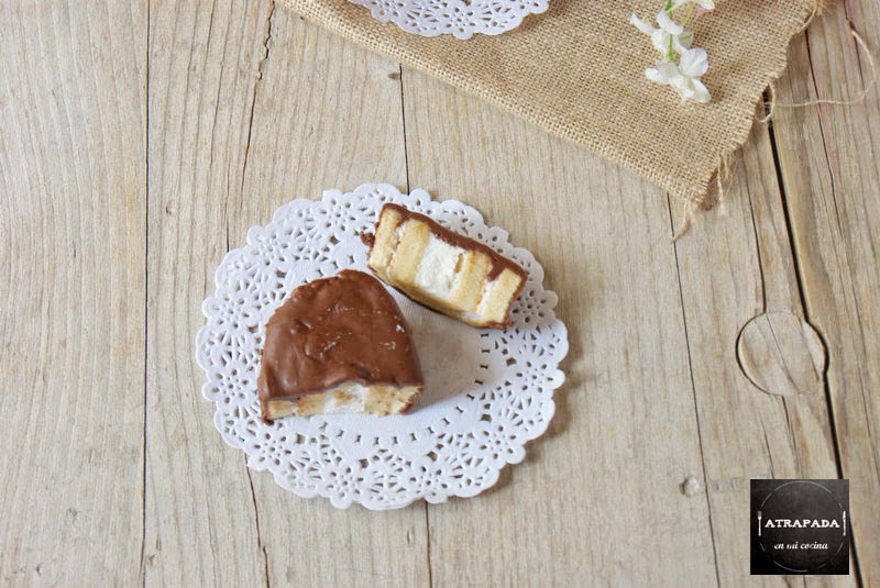 De nuevo último domingo del mes, y día de publicación del reto #Asaltablogs. Muchas veces cuando empiezas a inspeccionar el blog asaltado del mes encuentras recetas que tenías en pendientes desde hace tiempo. Y eso me paso cuando me di un paseo por el blog de Mara, Más dulce que Salado. Encontré estos phoskitos caseros que hacía tiempo quería hacer. Realmente estos phoskitos no son como los originales, están mucho más buenos, pero no recuerdan en sabor a los originales. Tampoco tenía intención de conseguir el mismo sabor, puesto que no soy muy fan de ellos. Mi madre tampoco lo es, por lo que cuando se comió uno de éstos dijo: éstos no son phoskitos, están mucho más buenos que los phoskitos. Aunque también tengo que reconocer que la cobertura no me ha gustado mucho, no soy muy dulcera y añadirle azúcar al chocolate no ha sido muy buena idea, pero quería ser fiel a la receta de Mara y así la he hecho.