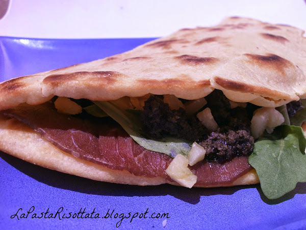 Esta Piadina se ha hecho según lo recomendado por Tiziana y le agradezco por darme la oportunidad de lanzarme en esta preparación por primera vez en mi vida; lo disfruté mucho y ha sido más que apreciado por los habitantes en mi casa. La forma no es del todo perfecta y la imagen no es de lo mejor, pero era muy,muy buena.