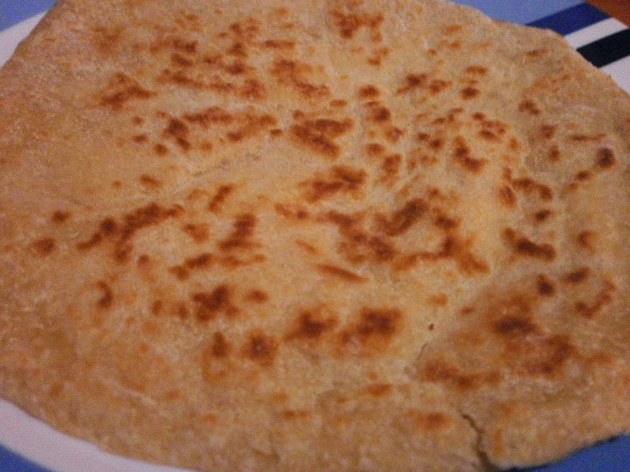 Questa Piadina é stata realizzata come consigliato da Tiziana che ringrazio per avermi dato la possibilitá di lanciarmi in questa preparazione;mi sono divertita un sacco ed é stata piú che apprezzata dalle bocche che ho in casa. La forma non é proprio perfetta e la foto é un pó una schifezza,ma era buonissima.