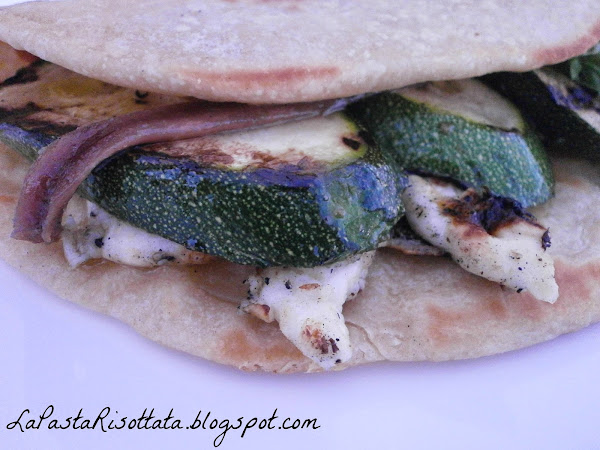 Piadina con queso de Fuerteventura, calabacines a la parrilla y anchoas
