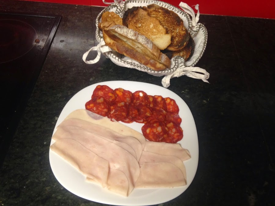 Embutido con pan tostado.