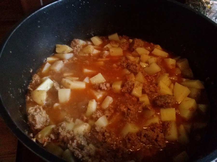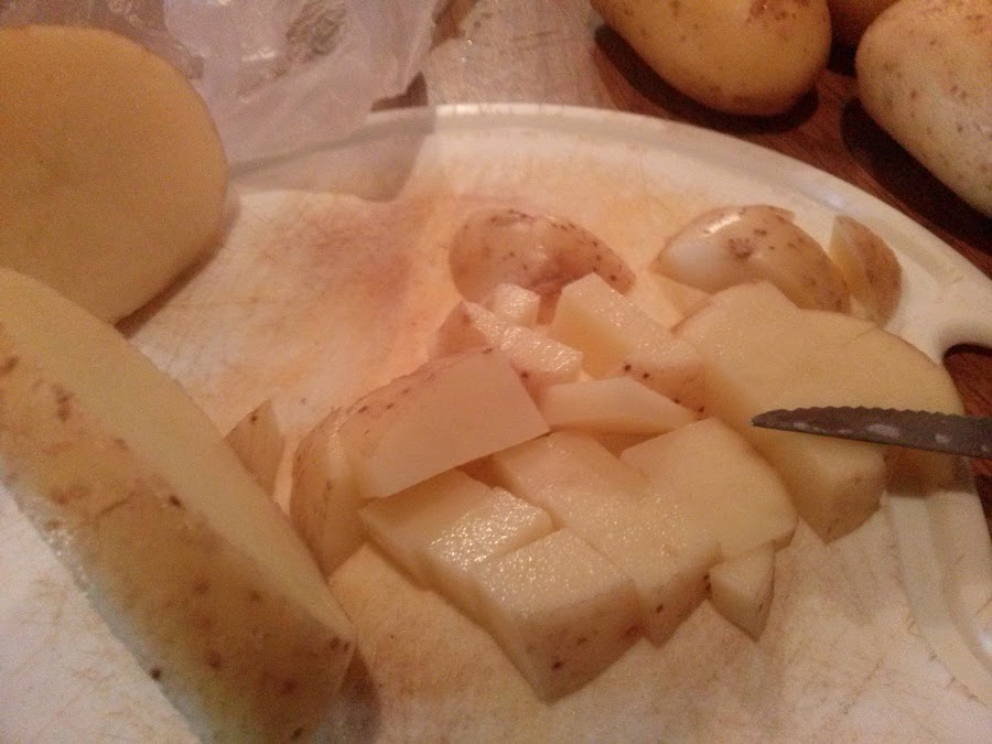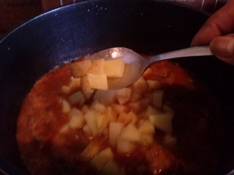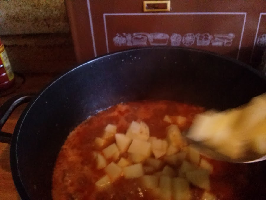 Las papa las hago pre-cocidas y es que si las hago directamente en el guiso se me baten, si a ustedes no les pasa esto entonces suprimimos la pre-cocida