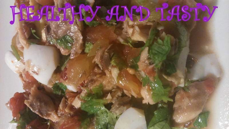 Se trocean y estrujan un poco con el tenedor los tomates. Añadimos un huevo duro picado, el culantro picadito y el filete de caballa. Aliñamos con sal, vinagre y aceite.