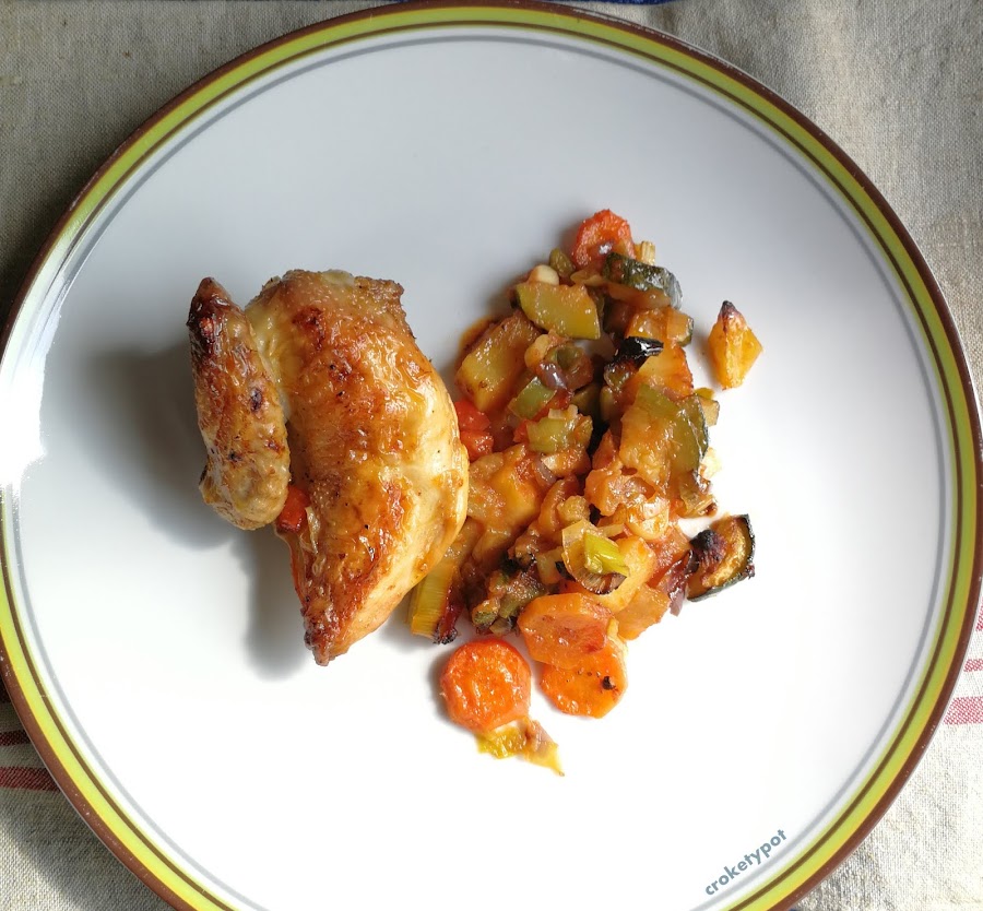 Para representar gastronómicamente esta pintura, me ha resultado un poco complicado, para hacer un plato sencillo y que representarse lo estilizado de la figura, y he optado por el pollo picantón , que es más airoso, acompañado de unas verduras, que pueden aprovecharse los restos sueltos que tenemos en la nevera. Sencillo y práctico.
