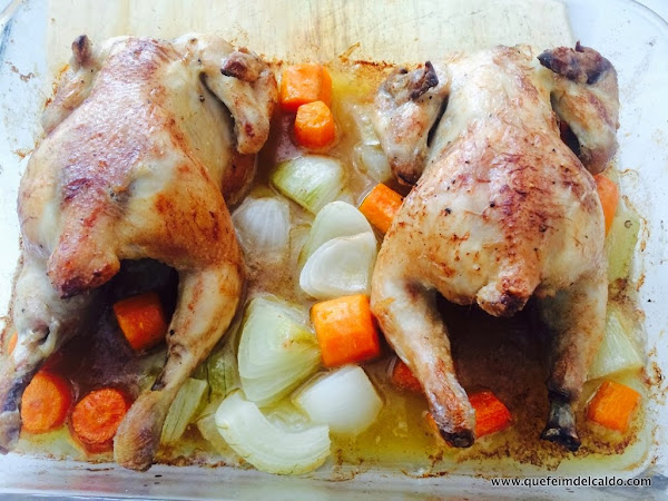 Servimos los picantones en una fuente,