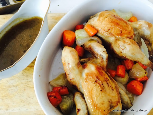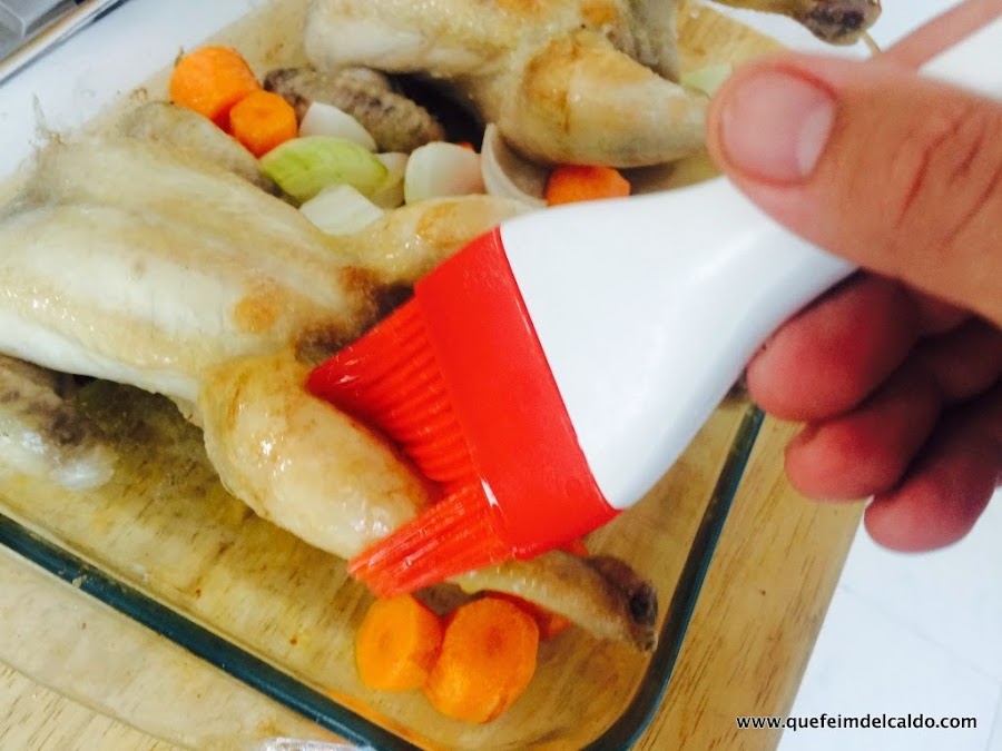 Pintamos con el jugo que hemos hecho para rociar el pollo y volvemos a introducir al horno unos 5 minutos más.