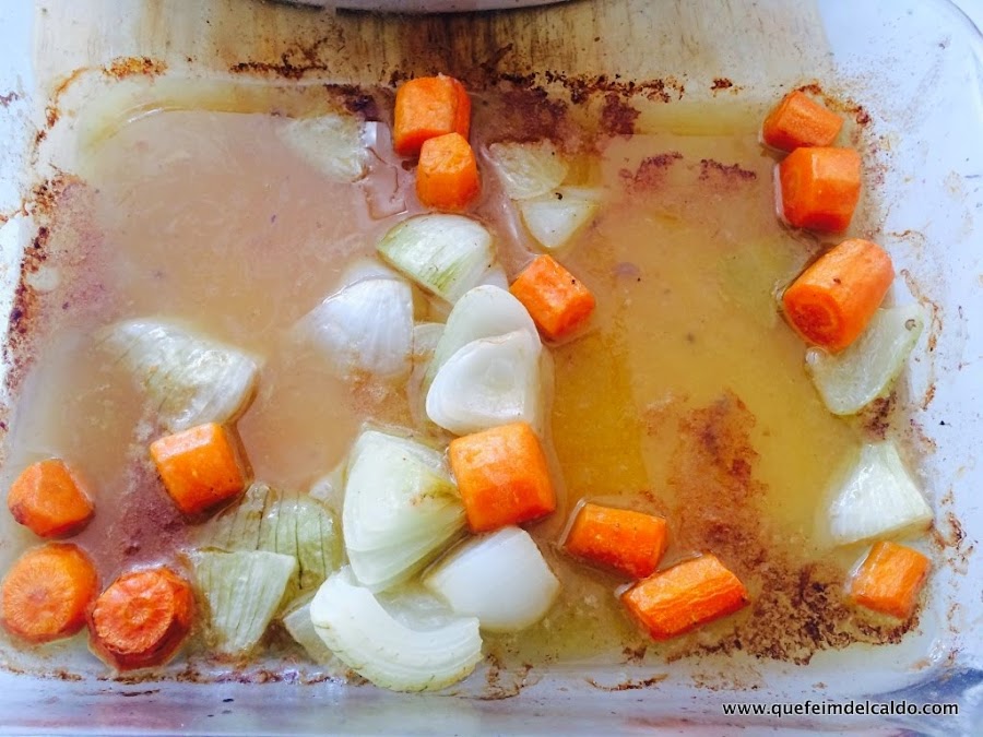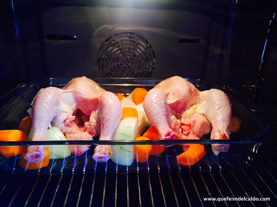 Incorporamos el caldo de ave que habíamos hecho anteriormente.