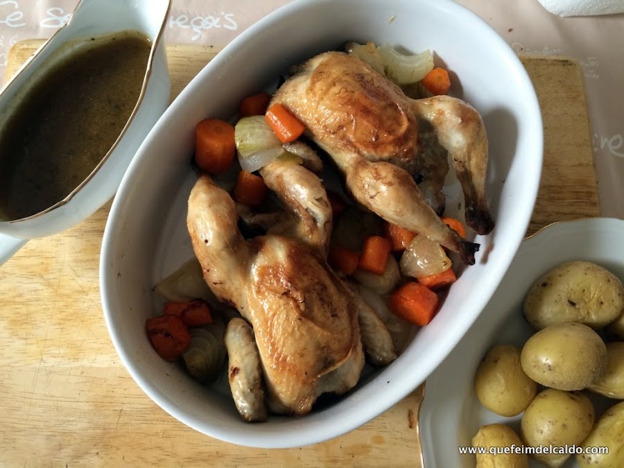 Sigo buscando poco a poco el punto o la forma de hacer el mejor pollo asado... Pues bien, hoy he querido imitar una receta de la gran Julia Child y he asado unos picantones a su estilo.