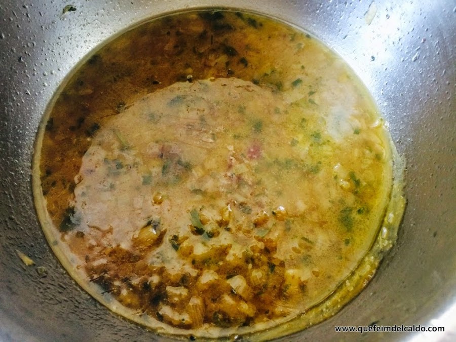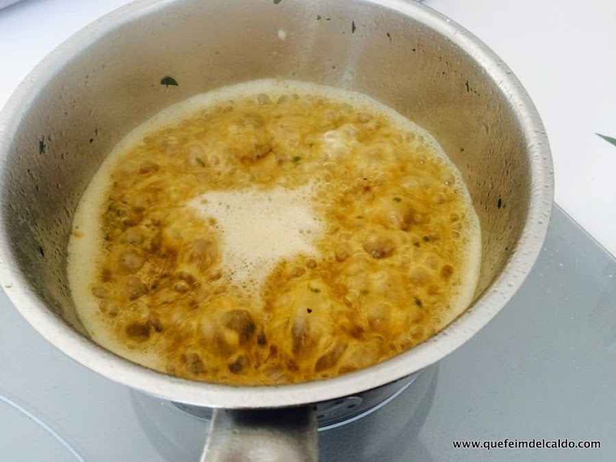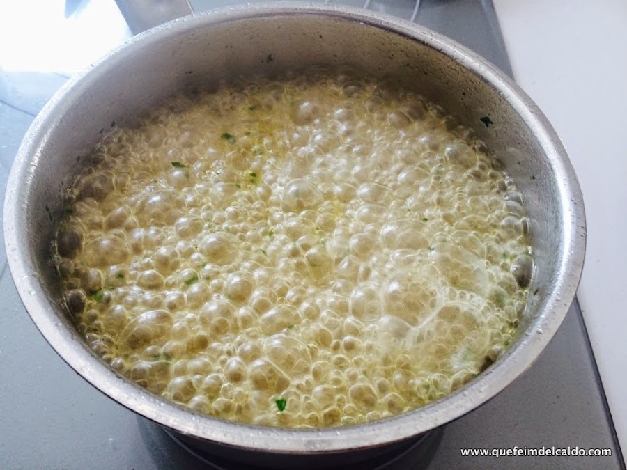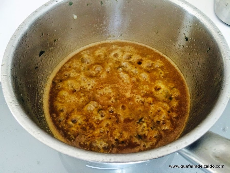 Damos potencia al fuego y reducimos el caldo durante 10 minutos.