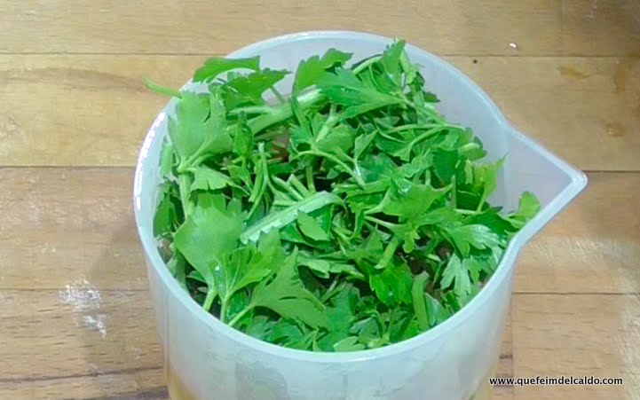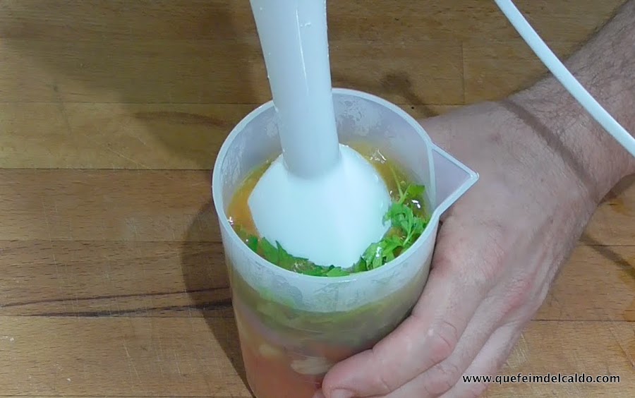 Añadimos la picada que hemos hecho al caldo donde se habían cocido los picantones.
